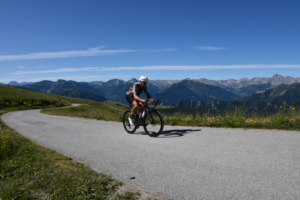 The climb begins after the hamlet of Pratolungo and rises rapidly through a series of numerous narrow hairpin bends, often immersed in the woods in the first few kilometers, before continuing into a wild Alpine valley.